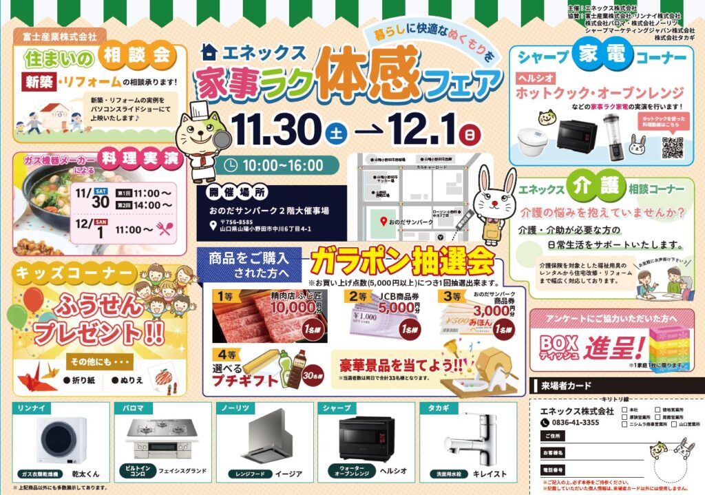 エネックス株式会社 11/30(土)・12/1(日)家事ラク体感フェア開催♪