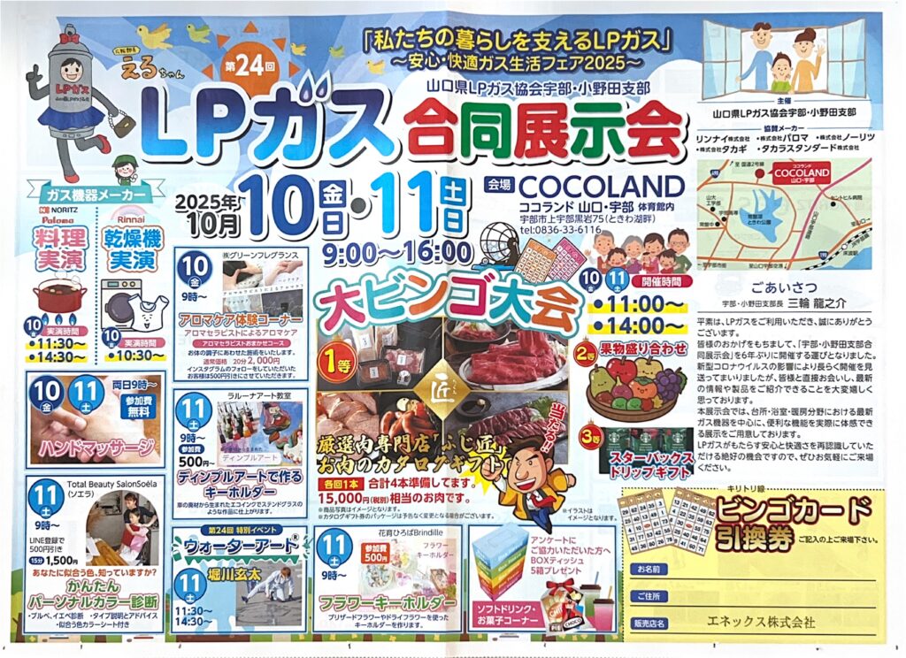 エネックス株式会社は、10月10日(金)・10月11日(土)に山口県LPガス協会宇部・小野田支部主催のLPガス合同展示会に参加いたします。