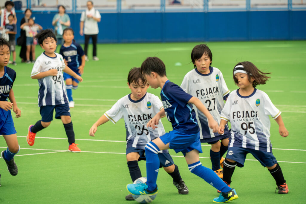 山口県内のU-9年代を対象とし、12チームを3チームずつの4グループに分けてリーグ戦形式で行われました。